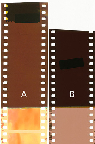 沖洗質量影響著菲林的寬容度、細節以及其色彩過度。下圖是同1卷彩色負片,我們連拍同一個靜物,然后在暗房把菲林底片從中間剪開,再分別沖洗。